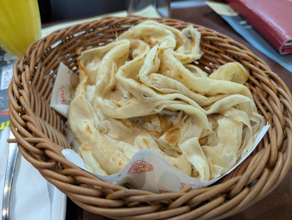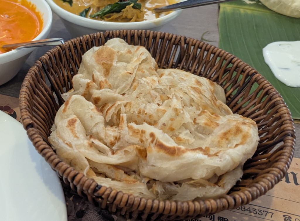 Paratha, porotta, parotta, a tak dále. Různý názvy pro tu stejnou věc. Je to vrstvená placka z jemně uhňácanýho těsta. Elitní záležitost mezi přílohama k indickým jídlům. Křupavoučký, jemňoučký. Ach jo.