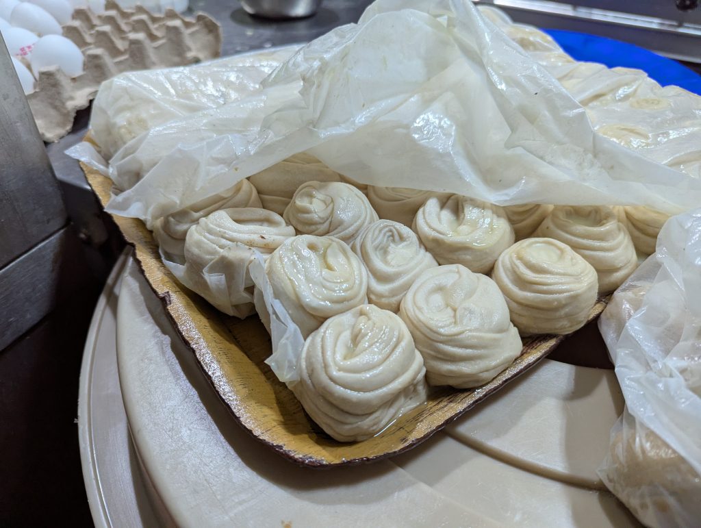 Začíná to těstem (například půl kila mouky Maida, 2 tbsp olej, trocha vody, 1 tsp sůl, 1 vajíčko). Zásadní alfa-omega informace je, že toto těsto se musí hnětat 25 minut v robotovi. Pak se dosáhne takové konzistence, aby těsto bylo vláčný a netrhalo se při dalším zpracování.